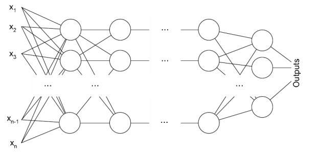 Суть обратного распространения ошибок состоит в распространении сигналов ошибки от выходов сети к её входам, в направлении, обратном обычной работе сети [7]. Пусть имеется сеть с множеством входов