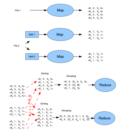 reduce: <k2,list v2=""> → list<k3,v3>. </k3,v3></k2,list>