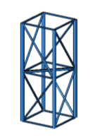 Определение пульсационной составляющей ветровой нагрузки выполняется для мачты четырехгранного сечения, имеющей 5 ярусов оттяжек. Ствол мачты сформирован из секций высотой 6,75 м, размеры поперечного сечения 2,5х2,5 м. Секции являются пространственными фермами. Для предварительного расчета сечение пояса принято из круглых труб размером 245х20 мм, элементы решетки — 121х10 мм. Общий вид мачты представлен на рис. 1, общий вид одной монтажной секции ствола мачты — на рис. 2.