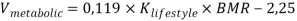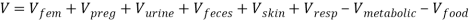 — объем воды (по формуле Hoyt and Honig, 1996 [10]), который выделяется в теле человека во время метаболизма пищевых продуктов и зависит от базовой скорости обмена веществ