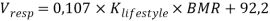 — объем воды (по формуле Hoyt and Honig, 1996 [10]), который тратит человек в течение дня при дыхании, зависящий от базовой скорости обмена веществ