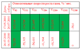 Данные хроматического анализа газов, представлены в таблице 2.