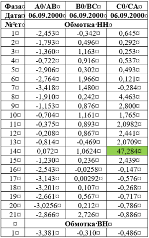 Целью выполнения качественного анализа, воспользуются измеренными данными трансформатора, находящийся в эксплуатации с 1977 года.