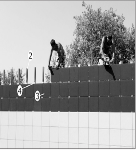 Устройство вентилируемого фасада из полистиролбетонных блоков имеет также еще одно важное преимущество — возможность возведения ограждающих конструкций без использования строительных лесов. На рис. 2 показано, как выполняются работы с междуэтажных перекрытий.