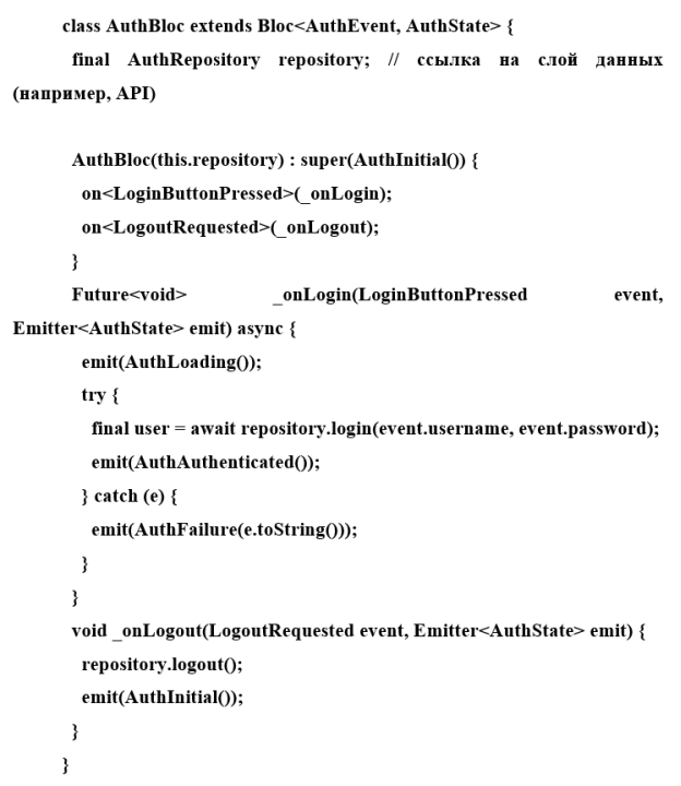 Далее создается класс AuthBloc, наследующий от базового Bloc