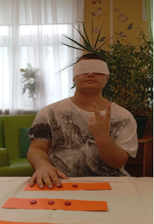 Процесс пришивания пуговиц к перчаткам специальными пластмассовыми иглами требует высокой координации движений и ловкости пальцев. Необходима помощь взрослого. Это отличная тренировка для развития мелкой моторики, которая часто нарушена у детей с ТМНР. Занимаясь этой деятельностью, дети учатся концентрироваться, что положительно сказывается на их внимании.
