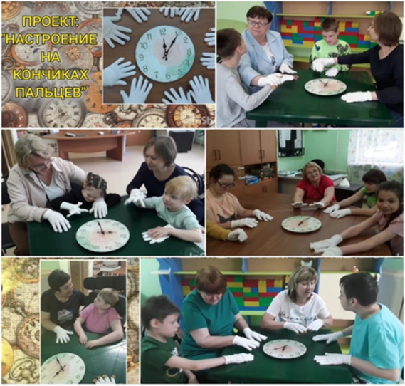 Любая форма игровой деятельности на проекте приводит в восторг моих воспитанников. В меру своих сил и способностей дети активно участвуют во всех совместных встречах. Каждый ребёнок в проекте «Настроение на кончиках пальцев» находит для себя вид и форму участия. Играют, складывают пуговки, собирают разрезные картинки, сравнивают, надевают и снимают с руки перчатки, просто поют. Проект имеет вариативность участия детей с разными способностями и это имеет особую ценность.
