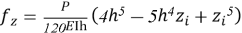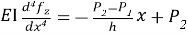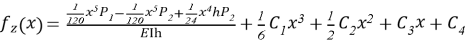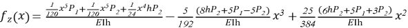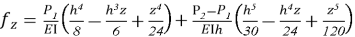 Здесь P обозначает линейно изменяющуюся (треугольную) распределённую нагрузку, действующую на консоль вследствие собственного веса грунта (кПа); EI — изгибную жёсткость консоли (кН·м²); h — высоту консольного элемента (м); zᵢ — отметку (или глубину) рассматриваемой точки вдоль консоли (м).