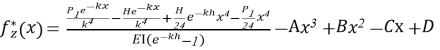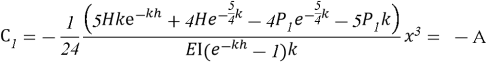 Интеграционные постоянные в данном уравнении определяются из граничных условий для консольной балки с жёстким защемлением в одном конце и вычисляются при x=0 и x=h соответственно.