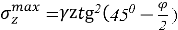 В этом случае для несвязных грунтов-таких как песок и щебень-при C=0 и φ≠0 соотношение между главными напряжениями записывается следующим образом: