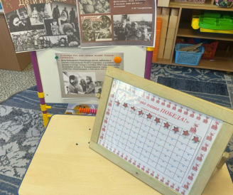 Каждое новое открытие, каждый подвиг, о котором узнавали дети, подвиг, совершенный в рамках проекта, отмечался на специальном «Календаре Победы» символической звездой. Эта визуализация прогресса стимулировала интерес детей и создавала ощущение общности и причастности к большому делу — к приближению Великой Победы. В завершении проекта на календаре старших и подготовительных групп было размещено 80 заветных звезд, ставших предметом гордости как для взрослых, так и для детей.