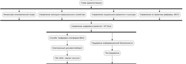 Структурная схема современной администрации принципиально отличается наличием новых подразделений, отвечающих за цифровую трансформацию, обслуживающих электронные сервисы и координирующих взаимодействие с жителями через онлайн-платформы (рис. 5)