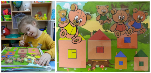 «Сосчитай медведей и дома» что можно сказать о их количестве? Рассели медведей по домам (тренируем понятие «самый большой, «поменьше, «Самый маленький»)