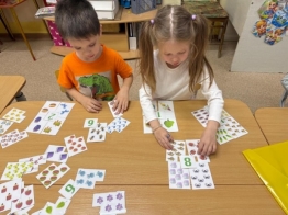 «Цифровые пазлы» впроцессе игры дети пересчитывают предметы, называя итоговое число; закрепляют знания цифр, соотносят их с числом предметов; развивать внимание, логическое мышление, самостоятельность. После выполнения задания предлагается показать и рассказать, какие карточки с цифрами и карточки с предметами были сложены и чем они отличаются.