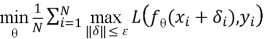 Состязательная подготовка заключается во включении в процесс обучения специально искаженных примеров, формируемых на каждом шаге. Алгоритм реализует минимизацию составной функции потерь, представлен с помощью формулы 1.