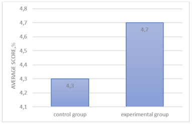 The results of the experiment revealed that students in the experimental group were significantly better at formulating and analyzing information than students in the control group. It can also be concluded that the case study method facilitates learning. Open-ended assignments (requiring students to write their own answers) on the topic were administered, revealing that the experimental group had a higher average assessment score. The results were presented graphically (Fig. 1).