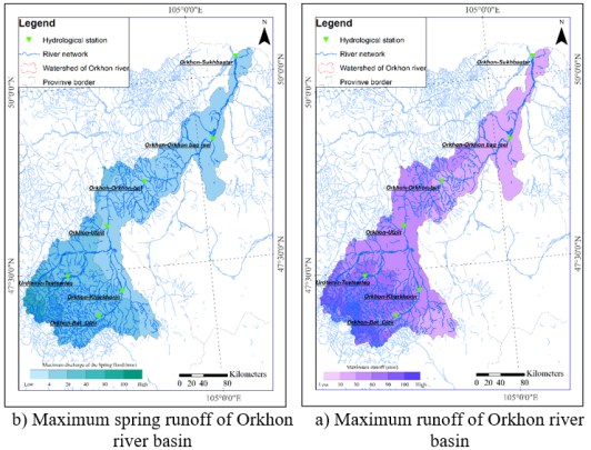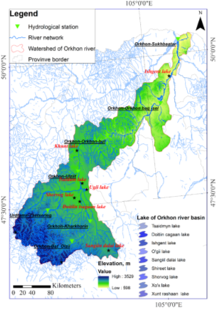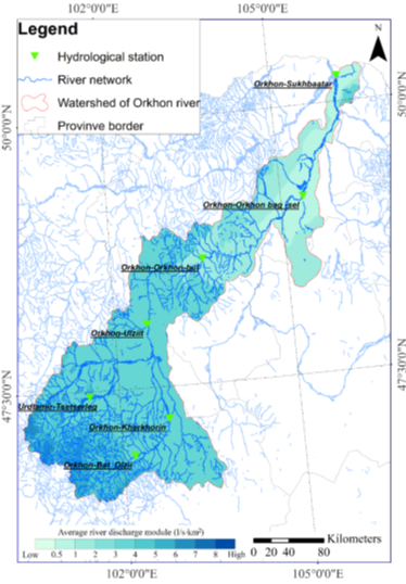 The Orkhon River watershed is a sub-basin of the Selenge River and, ultimately, part of the Lake Baikal catchment system. However, the primary focus of this study is not on Lake Baikal’s water level, but on the internal water resources, hydrological regime, climate change, and the interactions with human activities within the Orkhon River watershed. Therefore, it is essential to study the watershed’s water resources, climate, hydrological regime, changes in water availability, and their interrelated dynamics as an integrated system.
