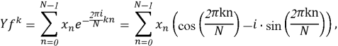 1) По формуле (1) вычисляется дискретное преобразование Фурье (в программной реализации — в виде быстрого преобразования Фурье алгоритмом Кули-Тьюки) для обоих сигналов: