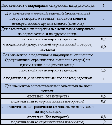 В соответствии с [8] допускается принимать следующие коэффициенты расчетной длины: