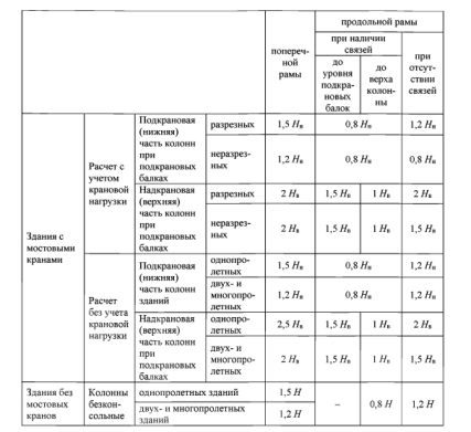 Для каркасных сборных одноэтажных зданий в соответствии с [9] допускается принимать следующие коэффициенты расчетной длины: