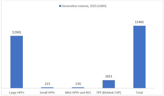 By end-2025, total generation reached 15.4 billion kWh. Large hydropower accounted for 84 % (12.9 billion kWh). Small hydropower and other RE sources produced only 0.457 billion kWh — about 3 % of total consumption (19.3 billion kWh including imports). As can be seen, large hydropower plants account for the overwhelming majority of production, whereas both small hydropower plants and new solar installations still contribute only a marginal share of total consumption. At the same time, the government is actively expanding small-scale energy programs: in 2023, 10 new mini-hydropower plants were commissioned, and in 2024 the commissioning of 15 more was planned [3]. The renewable energy support program also includes solar projects: by the end of 2025, the total installed capacity of commissioned solar power plants had reached 101.95 MW. However, this capacity is still insufficient, and therefore major investment contracts have been signed in parallel for the construction of five solar and one wind power plant with a combined capacity of 3,150 MW.