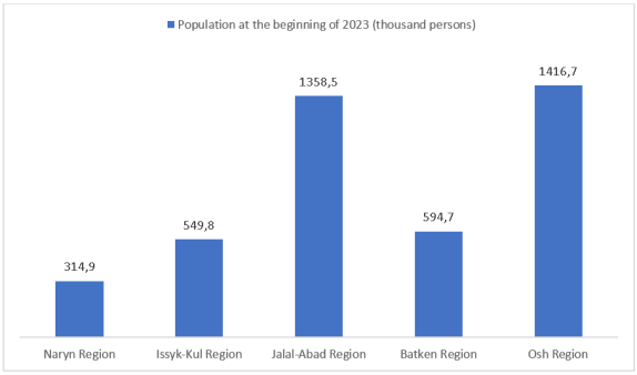 Fig. 3 . Population of key mountainous regions of Kyrgyzstan at the beginning of 2023