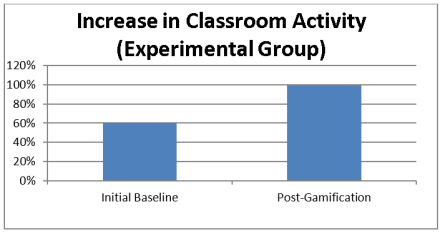 Results and Discussion . «The findings revealed a significant difference between the two pedagogical approaches. The experimental group showed a higher level of participation and academic achievement. In terms of student engagement, the experimental group showed a remarkable 38 % increase in classroom activity compared to their initial baseline. This growth confirms that game elements effectively motivate passive learners to participate more actively in the learning process. This is illustrated in Figure 1.
