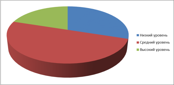 С целью изучения динамики развития мелкой моторики рук у детей с дизартрией мы провели контрольный эксперимент.Низкий уровень моторики отмечается у 3 детей (30 %), средний — у 5 (50 %), а высокий уровень у 2 (20 %). Результаты вы можете наблюдать на диаграмме: