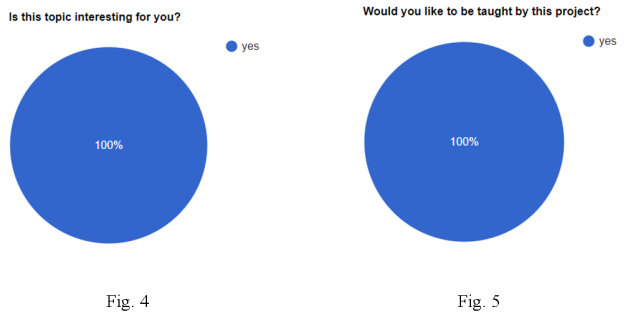 Figure 4 and Figure 5 illustrate the responses of students of 7–8 grade. As it is shown in the pie charts, students are open to this method of teaching and are interested in selected topics.