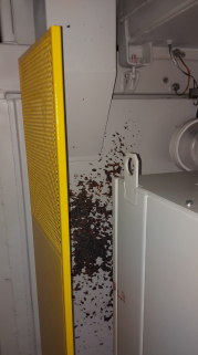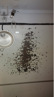 Негативным последствием применения метода «постукивания тяжелым предметом» для контроля уровня песка является неизбежное повреждение лакокрасочного покрытия наружной боковой поверхности бункера. Примеры повреждений боковых поверхностей песочных бункеров на электровозе 2ЭС6 приведены на рисунке 1.