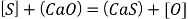 Процесс десульфурации расплава рассчитывается согласно уравнению замещения кислорода в шлаке серой, например: