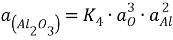 Активность оксида алюминия в шлаке согласно реакции (5) определяется по формуле