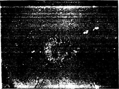 Характерный след от удара шара о поверхность оксидированной детали показан на рис. 1. Визуальный анализ фотоснимка дает основание считать, что при ударе шара деформация направлена в глубь образца. Это же подтверждается и профилограммой отпечатка, где видны незначительные навалы по краям лунки (рис.2) в сторону проекции вектора скорости шара (рис. 3).
