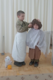 В старину парикмахерскую называли цирюльня. Во многих городах России можно было встретить бродячих цирюльников. Они ходили по базарам, дворам и квартирам, искали клиентов. Носили с собой большие ящики с инструментами и деревянный стул, чтобы подстригать людей прямо на улице. Реконструкция картины на рис.8.