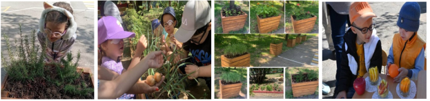 — Наполнение: «мятная дорожка», где высажены несколько сортов мяты, «аптекарский огородик» с лекарственными растениями и пряными травами (петрушка, сельдерей, лук, чеснок и др.) и ароматная дорожка из 5 деревянных кашпо с растениями- лавандой, пеларгонией, календулой, розмарином, базиликом природные объекты: деревья и кустарники, различный природный материал (галька, ракушки, перья, шишки, каштаны и др.».