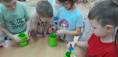 Педагог помогает детям выполнить все этапы эксперимента.