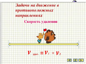 Важно тут учитывать программу, по которой учатся ученики, так как у Моро в 4 классе проходят только два вида движения, это Встречное движение и движение в противоположных направлениях, а у Петерсон в 4 классе проходят все 4 типа движения, встречное движение, движение в противоположных направлениях, движение вдогонку и движение с отставанием.