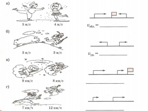 После видов движения обсудим какую скорость и где нам надо найти. Скорость сближения или скорость удаления.