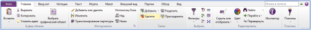 occupies the vertical space as described below. If you want to see more while working on the Sibelius work window, you can minimize the ribbon by clicking this button. After that, the ribbon disappears and only tabs remain at the top of the screen. To return the ribbon, press the button again, you can lock the ribbon so that it is always visible, or the ribbon temporarily appears and disappears again until you select the desired item shortcut.