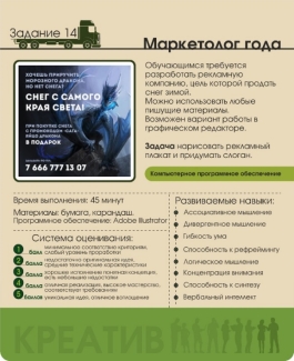 - ТРИЗ . Решение творческих задач через выявление и преодоление противоречий. Например, задание «Век живи-век учись» или «Маркетолог года» (рис. 1), нужно выполнить противоречивую задачу, например, разработать рекламную компанию по продаже снега зимой.