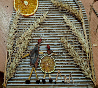 Ресурсное панно из ароматных специй и природного материала