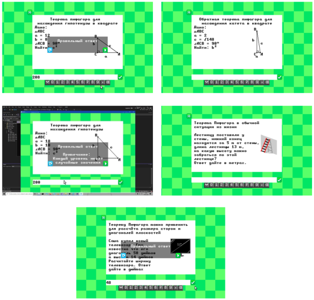 Примеры использования теоремы Пифагора в различных сферах легли в основу практической части тренажёра, что позволило наполнить абстрактные математические выкладки конкретным практическим смыслом.