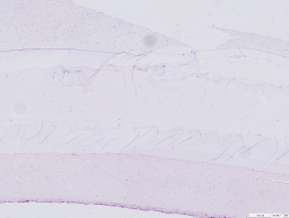 Выводы: в целом структура ногтевой пластины на микроскопическом уровне не нарушена.
