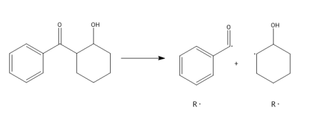 Фотоинициатор — соединение, обладающие способностью поглощать УФ-излучение с последующим переходом в возбуждённое состояние и внутримолекулярным распадом, в результате которого высвобождаются реакционноспособные частицы — свободные радикалы. Необходимая для реакции длина волны и, соответственно, максимальная абсорбция УФ-излучения зависит от химического состава фотоинициатора. В гель-лаках применяют фотоинициаторы, инициирующие радикальную полимеризацию внутримолекулярным расщеплением связей. Как правило, это бензоиновые эфиры, бензилкетали, α-аминоалкилфеноны, гидроксиалкилфеноны и группа фосфиноксидов. Распад бензоина и его производных приводит к образованию свободных радикалов, реагирующих с двойными –С=С– связями.
