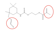 Далее радикал реагирует с активными группами олигомера, либо по двойной C=C связи в блоке с акрилом, либо разрывая цикл. Например, такой олигомер из IPDI и HEMA:
