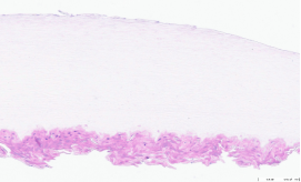 Для проведения исследования был взят образец. Стандартная гистологическая проводка, толщина срезов 3–4 мкм, окраска гематоксилин-эозином по стандартной методике.