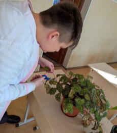Все объекты изучения относятся к светолюбивым растениям. Спустя 168 часов у бегонии тигровой — ( Begonia Bowerae «Tiger» ) и пеларгонии пачкающей — ( Pelargonium inquinans) наблюдается изменение цвета листьев с зелёной окраски на желтовато-коричневую, что обусловлено низким содержанием хлорофилла из-за сокращения светового дня и снижения температуры, что ограничивает синтез хлорофилла, а также помутнее раствора из-за изменения структуры антоцианов связанных с изменением pH среды, а у драцены Сандера — ( Dracaena Sanderiana Lucky Bamboo) цвет листьев не изменил окраску, что говорит о высоком содержании хлорофилла. В процессе практического исследования водородный показатель раствора находился в пределах 8,5–9 pH.