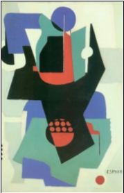 Под влиянием Ильи Болотовского Слободкина перешла к чистой абстракции. В картине «Пузатая печь» (1936–1937) она экспериментирует с упрощением форм и изогнутыми плоскостями. Большое внимание Эсфирь Слободкина уделяет и цвету: белый фон интересно контрастирует с яркими оттенками (красным, зеленым, синим, черным), которые, в свою очередь, преобладают в основной композиции картины. Правильное использование техник позволяет сравнивать эту картину с техникой коллажа — будущего фирменного приёма Эсфирь (рисунок 2).