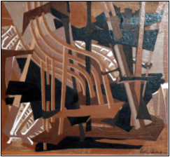 В 1960-е гг. её стиль стал еще более строгим, соответственно более приближенным к кубизму. Акцент в картинах этого периода творческого развития художницы сделан на взаимодействии фигур и пространства, что создает эффект наслоения. Можно отметить и некоторые изменения в цветовой палитре, а именно: переход от сложных оттенков к более простым, которые не размывают границу фигуры, а подчеркивают ее. Особенно ярко подобные тенденции видны в картине «Строительство лодок» (1966–1969 гг.) (рисунок 3).