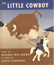- Цвет: цветовая гамма была продуманной — каждый оттенок создавал настроение, которое мгновенно считывалось просматривающим. Художница умело сочетала мягкие и резкие цвета, придавая иллюстрациям яркость и «живость». Однако в коллекции Эсфирь имелись и экспериментальные работы, в которых она использовала минимальное количество ярких цветов, однако от этого иллюстрации не становились менее интересными и познавательными. Одним из таких примеров является книга «Маленький ковбой» (смотри А.17), опубликованная в 1948 г. В ней Слободкина использовала всего пару оттенков. Связано это было со смещением акцента на смысловую составляющую: Эсфирь было важно путем иллюстративного ряда донести до детей основную мысль о важности трудолюбия и пропорциональности затраченных усилий и конечного результата (рисунок 5).
